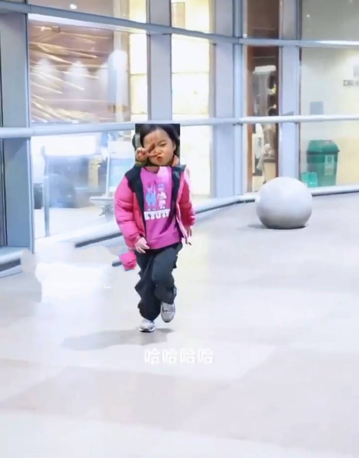 白百何小儿子穿红色羽绒服,活泼可爱。