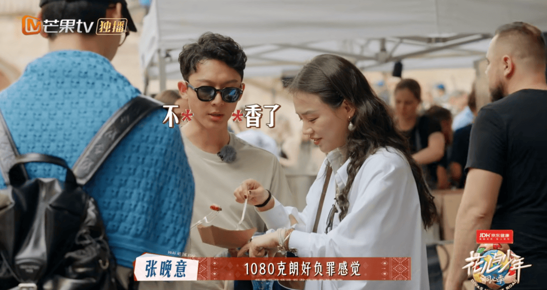 在布拉格citywalk,张晚意会因为一份价值300人民币的铁板鱿鱼而有负罪感,结果后来路过按摩店的时候,他还是很在意自己300块的鱿鱼而不好意思和大家一起去按脚。