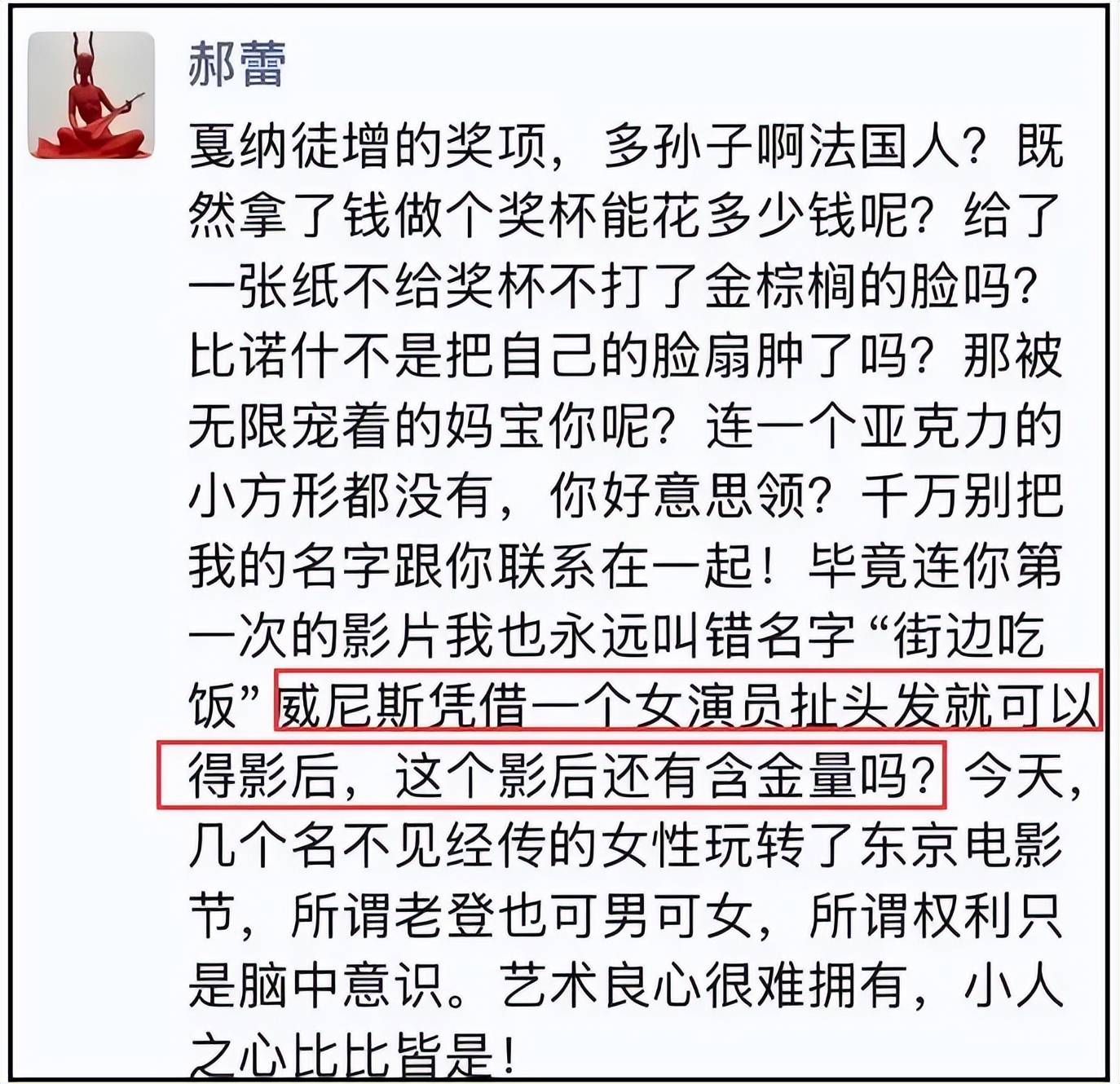 2025年11月,女星白百何亲身上阵,让外界得以窥见娱乐圈奖项运作内幕,女星郝蕾的朋友圈更是添了一把火,她骂了戛纳骂威尼斯,炮轰了半个娱乐圈,更是质疑起辛芷蕾威尼斯影后的含金量,嘲讽威尼斯凭借一个女演员撕头发就给奖,一点没给辛芷蕾留面子。