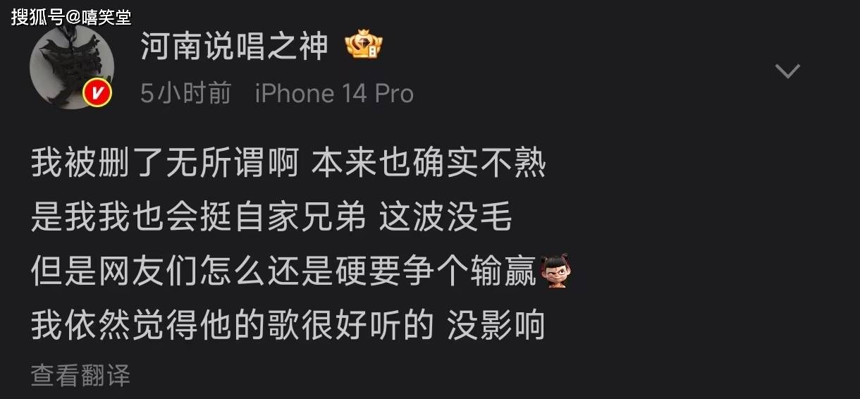 “我被删了无所谓啊,本来也确实不熟,是我也会挺自家兄弟,这波没毛病,但是网友们为什么硬要争个输赢”