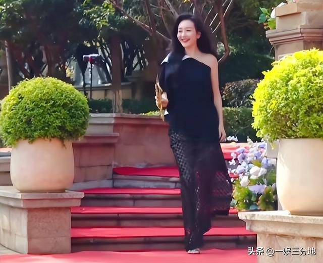 虽然下半身份很奇怪,但只看上半身的话,王鸥的大波浪搭配露肩裙,还是很有知性感觉的。