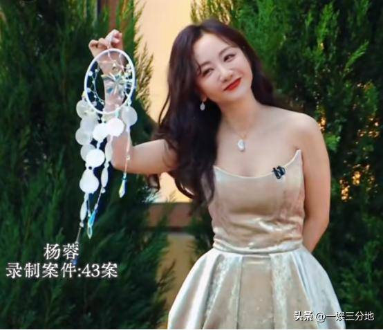 而排在第二位出场的杨蓉,也是大大方方穿着凸显身材的香槟色抹胸长裙。
