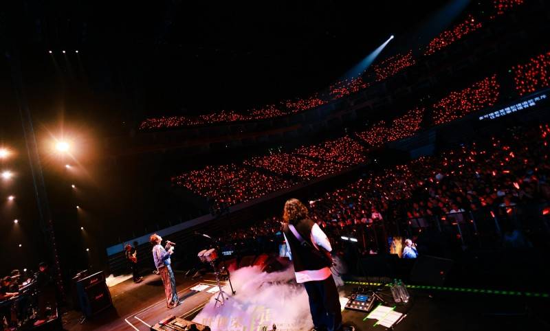 11月1日晚,成都五粮液文化体育中心体育馆内星光璀璨,BEYOND乐队成员叶世荣“你中有我”成都演唱会在此热烈上演。