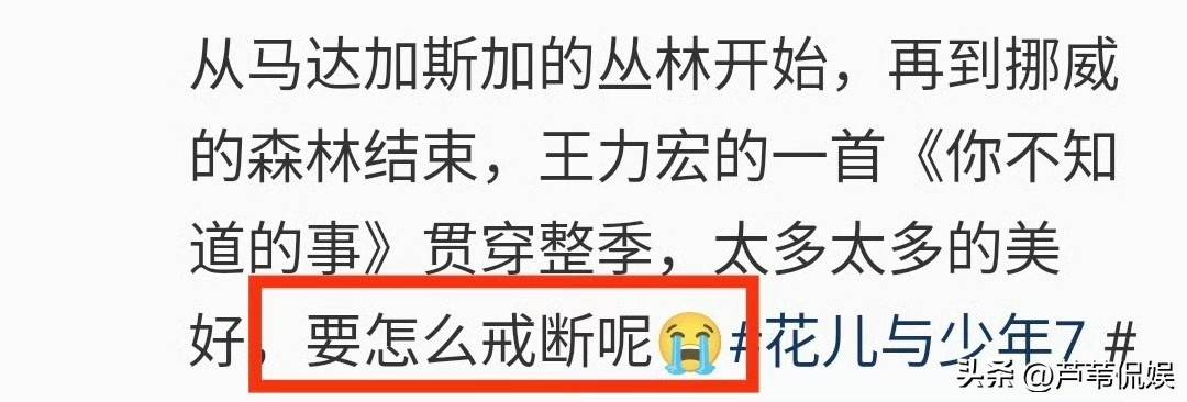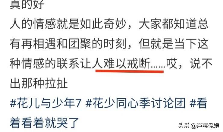 从嘉宾们的分享中可以感受到,大家对这一段共同的旅程充满了满意与不舍。离开《花儿与少年7》不仅是录制的嘉宾们的不舍,节目背后的观众们同样也有着深深的留恋。从开播至今仿佛只是昨日,很多网友表示,随着节目的结束,他们即将经历漫长的“戒断期”。这样的反应无疑说明了,这一季的《花儿与少年》在观众心中的热度和影响力。