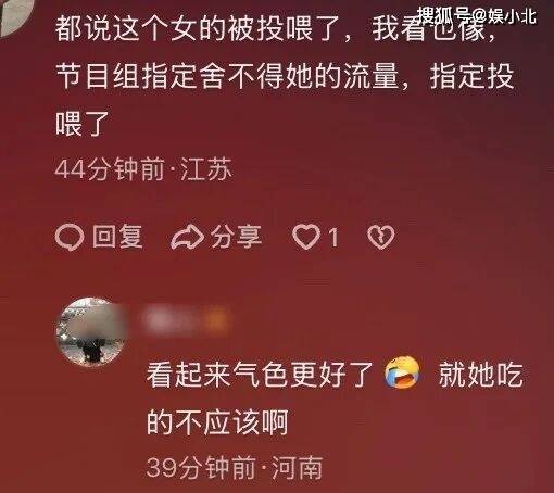 有网友觉得,冷美人状态这么好,肯定是被偷偷投喂了,投喂她的人要么是看中她流量的节目组,要么就是她自己的外援团。