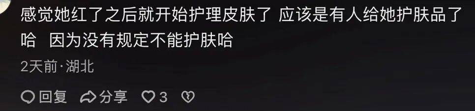 还有网友猜测,冷美人皮肤都变好了,肯定是有人给她送护肤品,走红后的她开始偷偷护理皮肤保持形象了。