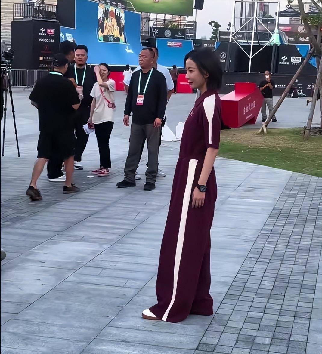 最近她在上海滑板赛事亮相,被观众拍到现场照片。