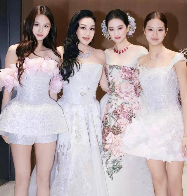 别看钟丽缇已经55岁了,但是和几个女儿站在一起依旧不显老。