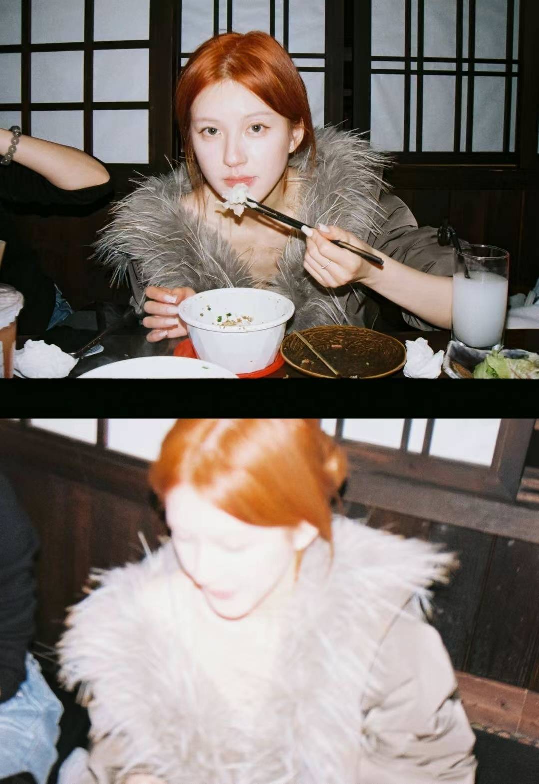 赵露思在工作之余认真吃饭。