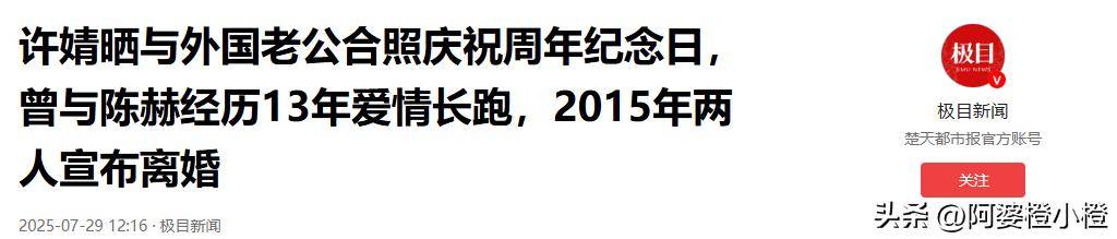 许婧晒与外国老公合照庆祝周年纪念日,曾与陈赫经历13年爱情长跑,2015年两人宣布离婚2025-07-29