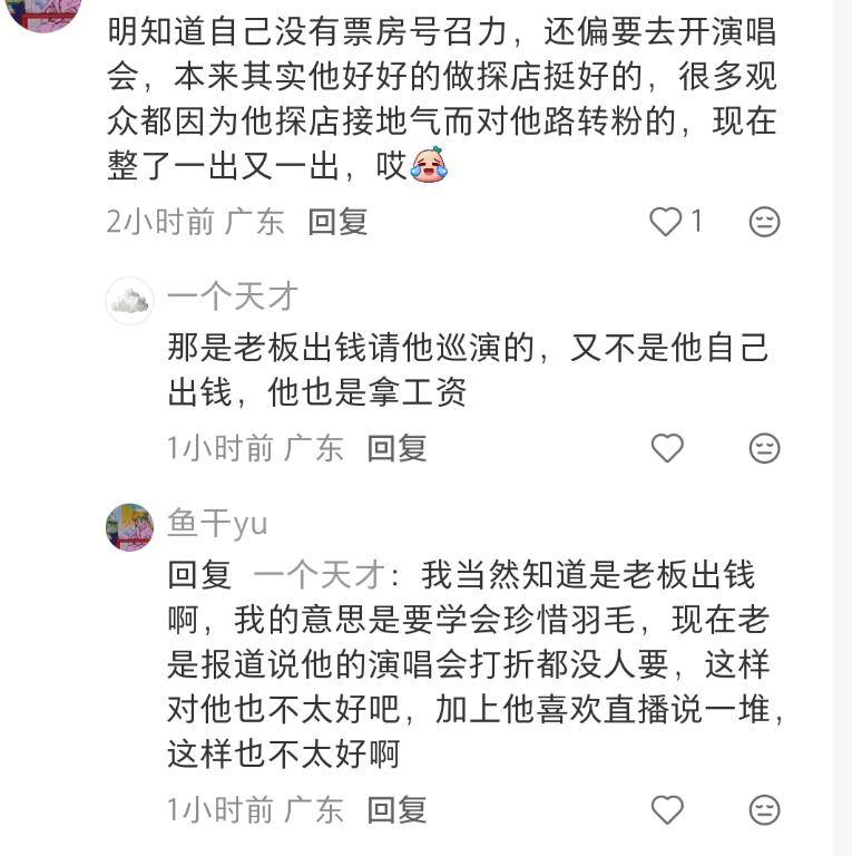 他最近正好要在阳江举行一场巡演,就能看出他的号召力,巡演的定价挺低,最高价才680元,定位比很多一线歌手都低了一半左右。