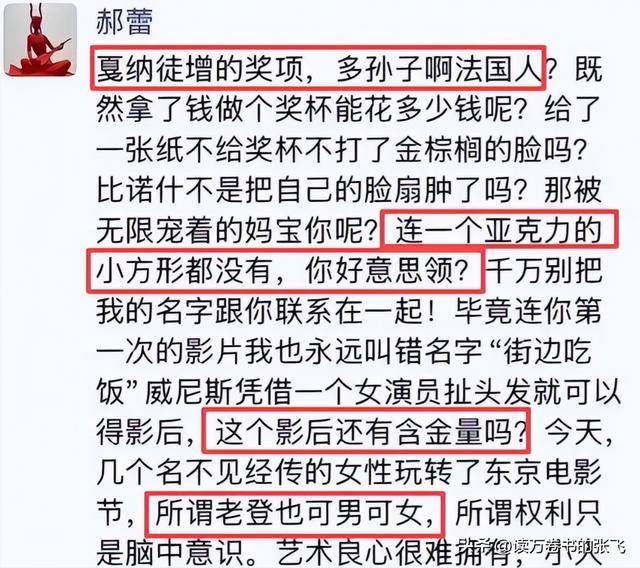 顺带还调侃东京电影节,说几个没什么名气的女演员在那里兴风作浪。