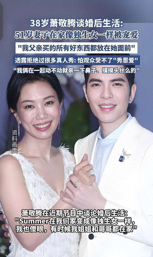 婚后,Summer被萧家视为“独生女”,公公总是把家里最好的东西优先给她。然而,考虑到两人的亲密举动容易引起外界误解,萧敬腾和Summer选择婉拒了所有的夫妻综艺节目邀请。