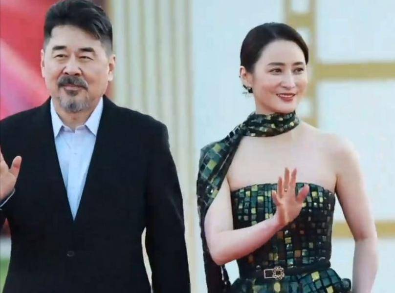 走到红毯中段转身时,裙摆缠绕险些绊倒,陈建斌第三次伸手。 这次她搭了一下丈夫的手臂,瞬间便收回。