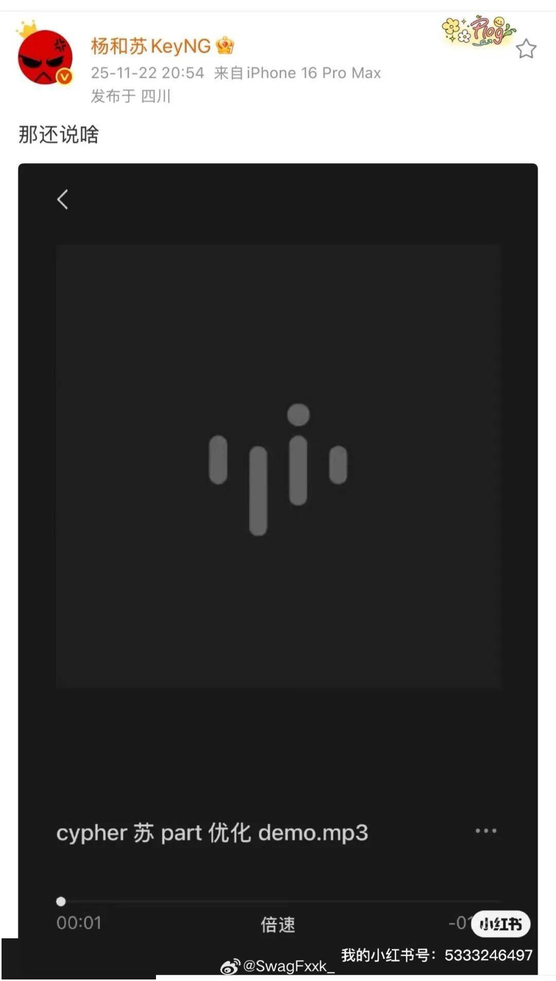 在小李pissy最先交出自己的part后,杨和苏也在今天晒出了自己的demo!