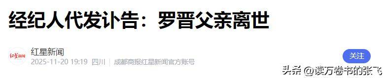 2025年11月20日,罗晋的经纪人在朋友圈发布了一则简短的讣告。