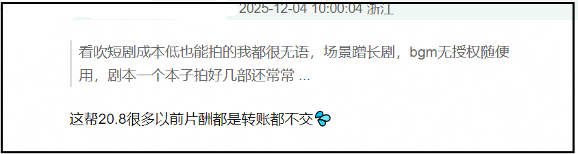 在网友看来,早该管一管短剧了,短剧圈有争议的可不止抄袭,相比较内娱明星,短剧演员基本上不用面对大众监督,他们随意开直播要打赏,只要黑料不出圈,就可以舒舒服服轻松赚钱,都有网友建议好好查一查短剧圈的税。