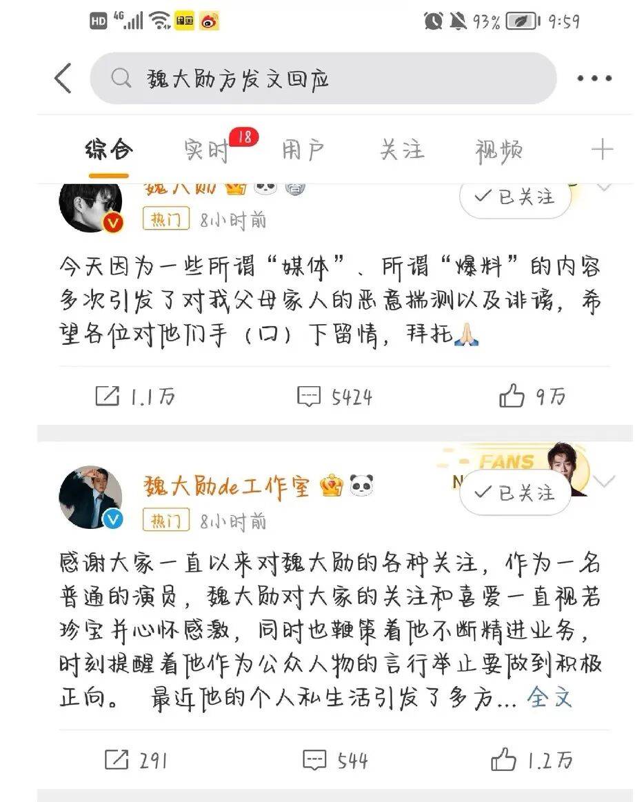 但魏大勋在这种无端爆料出来之后已经发博解释过了。