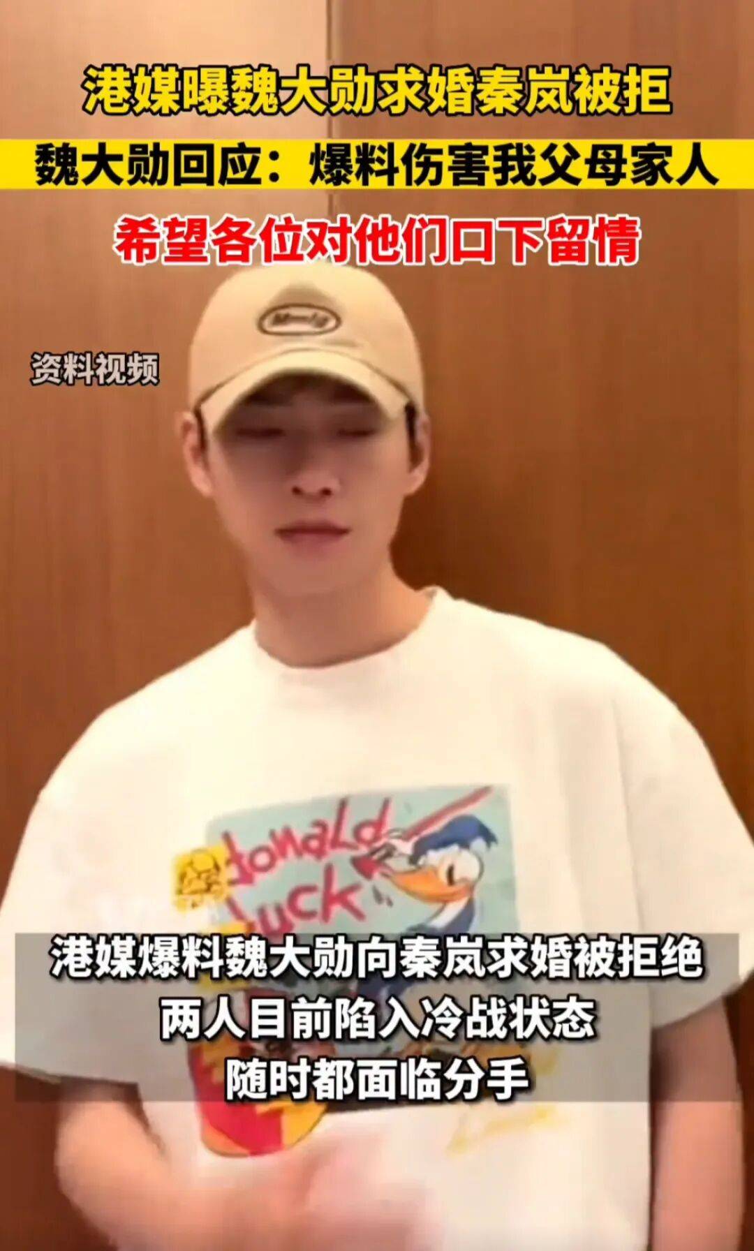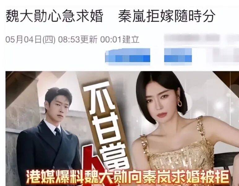 一会说俩人感情出现危机,一会港媒又爆魏大勋求婚秦岚被拒。