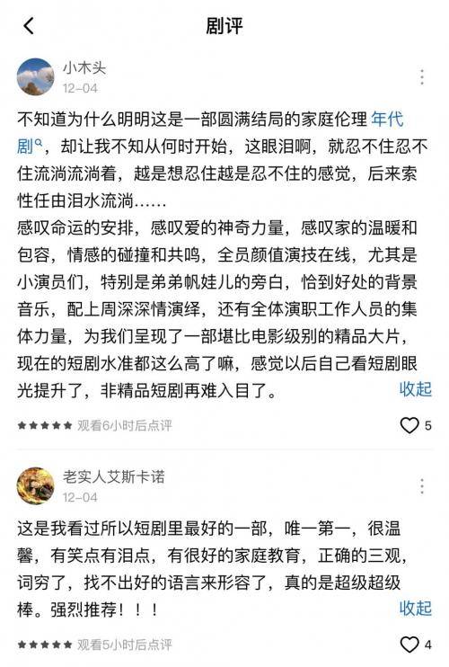 如果短剧可以承载如此丰富的情感表达,如果“家长里短”能够引发如此广泛的共鸣,那么这个行业的内容边界,远比我们想象的要广阔。