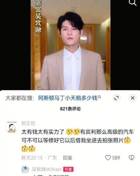 郭艾伦一直以活泼开朗的形象深受广大粉丝喜爱,他也多次参加综艺节目,展现出了幽默风趣的一面。近日,他在观看一档热门恋爱综艺时,不禁调侃起节目的男嘉宾,引发了不少网友的关注和讨论。郭艾伦留言写道:“太有钱太有实力了,这辆宾利车真是太高级了,能不能等它修好以后,借我坐进去拍张照片?”这一句话既透露出他的幽默感,也不乏对这位嘉宾豪车身份的玩笑式羡慕。
