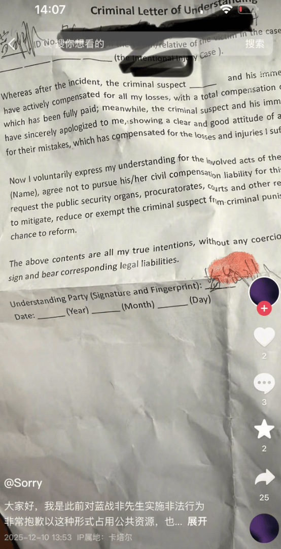 而且这个人还附上了疑似尝试联系蓝战非的留言: