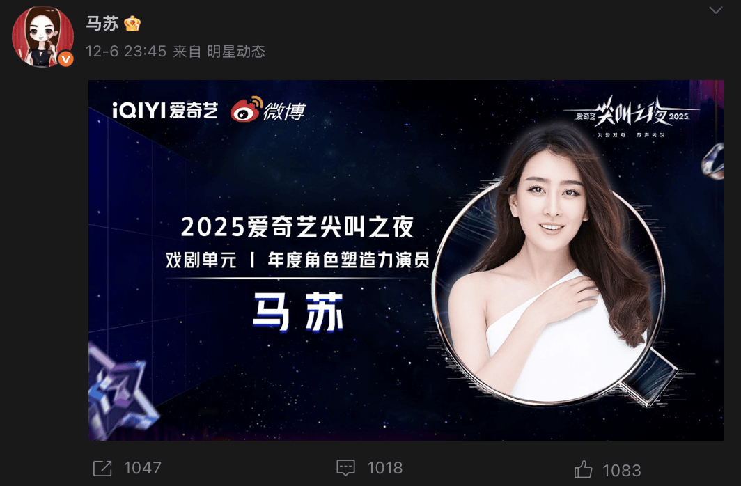 在一众85小花还在为视后宝座你争我抢时,马苏就已经拿下了飞天、金鹰、华鼎三料视后。