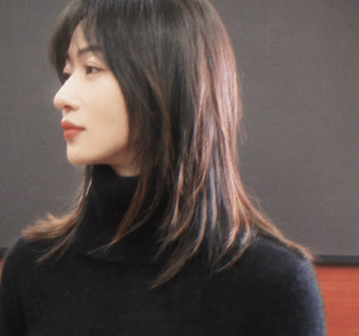 吴谨言黑色高领上衣衬出纤柔肩颈。