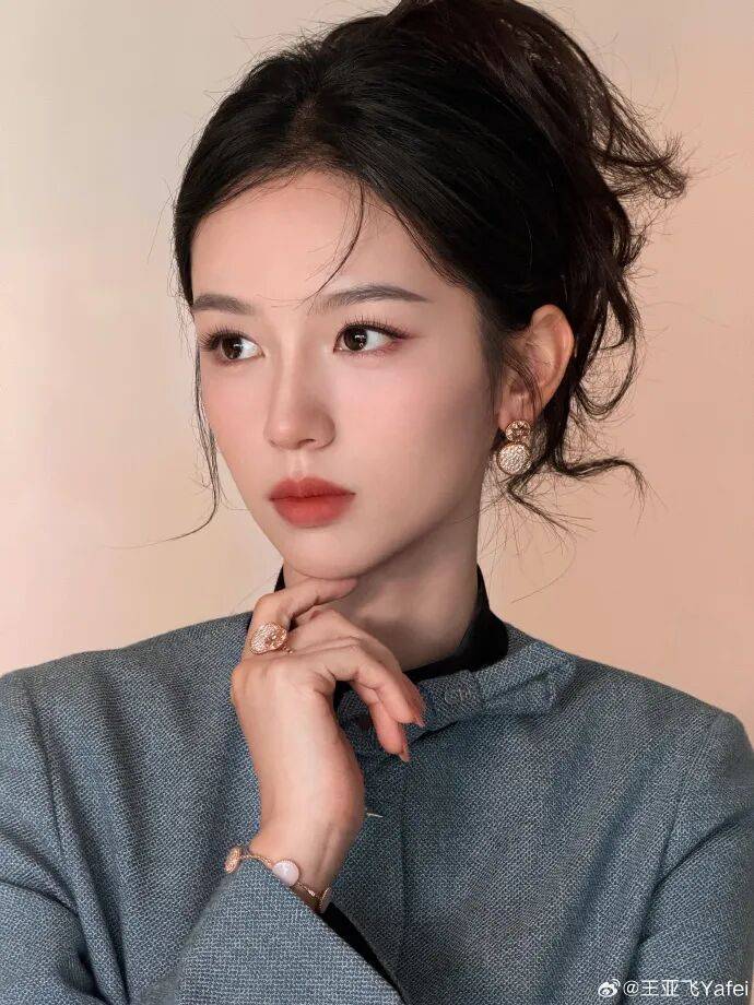 周也拥有高折叠度骨相+锐利下颌线赋予冷脸权威感,梨涡虎牙则破冰甜美,形成“冰川蜜泉式”反差,而且她天生贵气,仿佛天生就是白富美。
