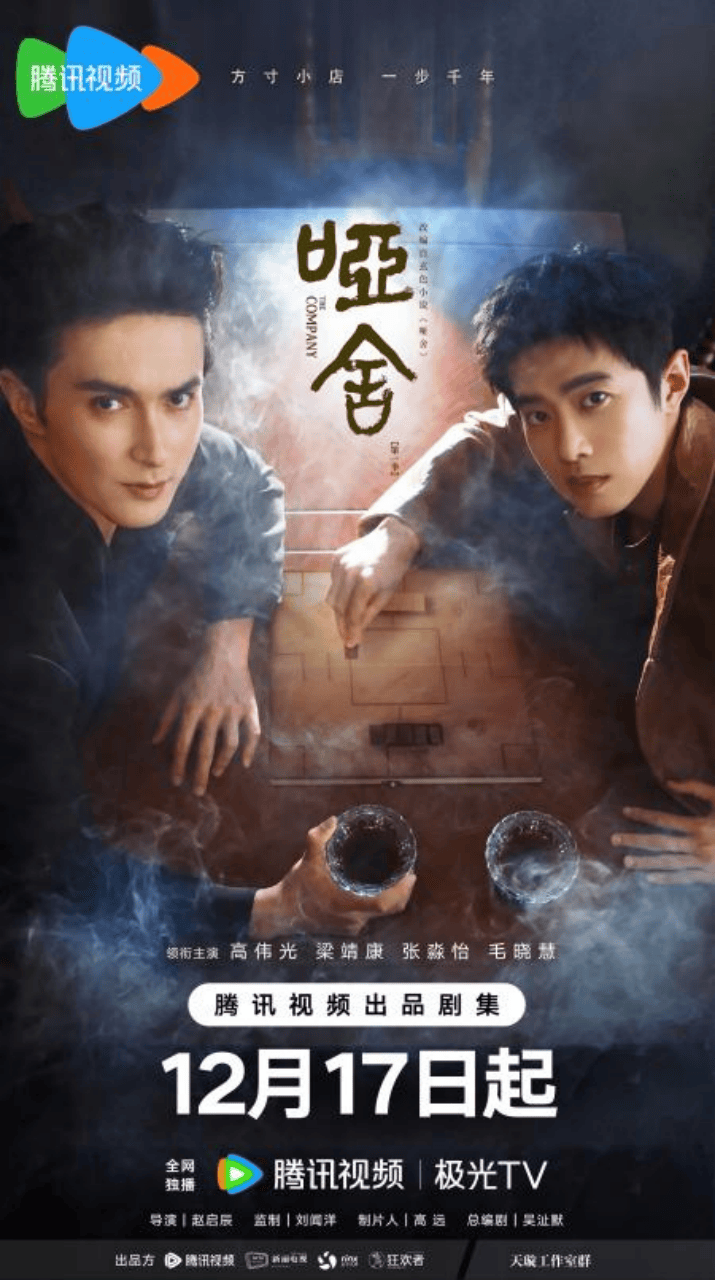 《哑舍》的核心魅力,在于将冰冷的古董赋予滚烫的生命力,以“古物寻回”为叙事主线,构建出一幅多元时空交织的瑰丽画卷。定档海报以古董店“哑舍”为核心场景,呈现出古典与奇幻交织的视觉质感。中式雕花门窗搭配砖墙、灯笼等元素,营造浓郁传统氛围;窗棂内则掩映着鱼纹镜、留青梳、锟铻刀、青铜剑、人鱼烛、六博棋、双跳脱、四季图等奇珍古董,古董店老板毕之(高伟光饰)、实习宠物医生苏北陆(梁靖康饰)围坐石桌,二人对饮甚欢,“神秘老板”和“脱线医生”对比鲜明,古今搭档“跨时空寻珍”氛围感呼之欲出。
