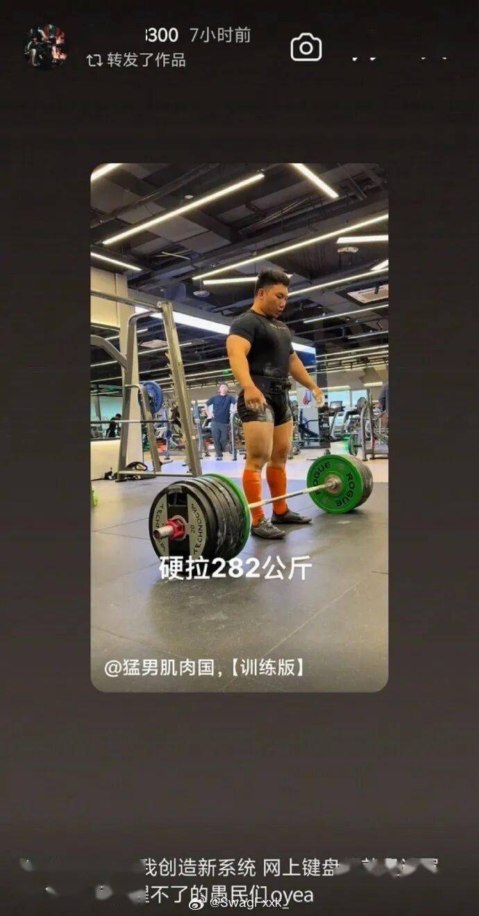 之后,Sakee还在杨和苏参加健身比赛后,转发了一个健身达人硬拉282公斤的视频并配文: