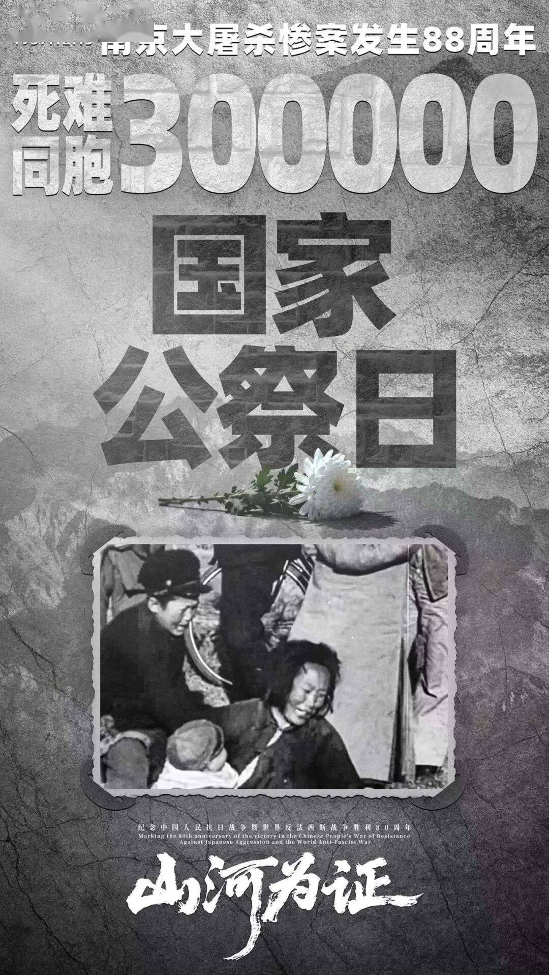 纪录电影《山河为证》是纪念中国人民抗日战争暨世界反法西斯战争胜利80周年的重要影视作品。影片秉承严肃的史学态度与高度的艺术责任,既注重历史逻辑的严谨性,也强调民族精神的传承性。88年前,侵华日军制造的南京大屠杀惨案不可忘记!在第十二个国家公祭日之际,对于这段历史我们从记忆到共识,从共识到行动,亿万中华儿女共同守护这份“不能忘却的记忆”。《山河为证》将持续开展相关主题活动,共同见证民族历史,共同传承民族精神。