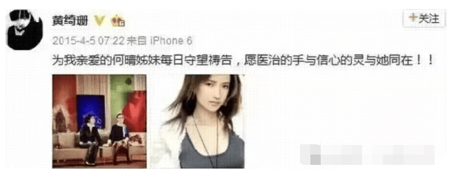 记得那个时候跟何晴关系好的黄绮珊还为她发博祈祷,希望她早日康复。
