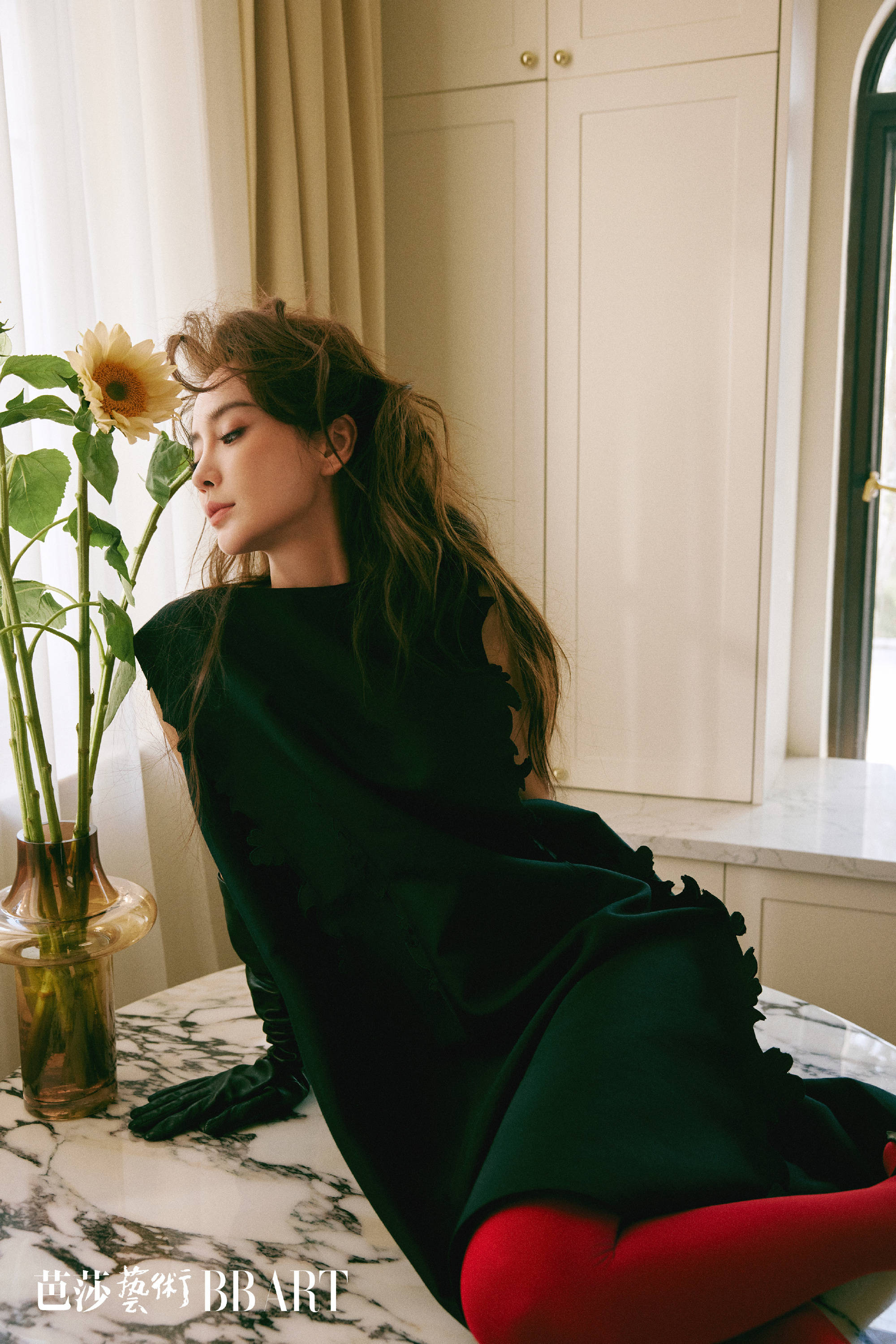 杨颖手拿鲜花超有气质。