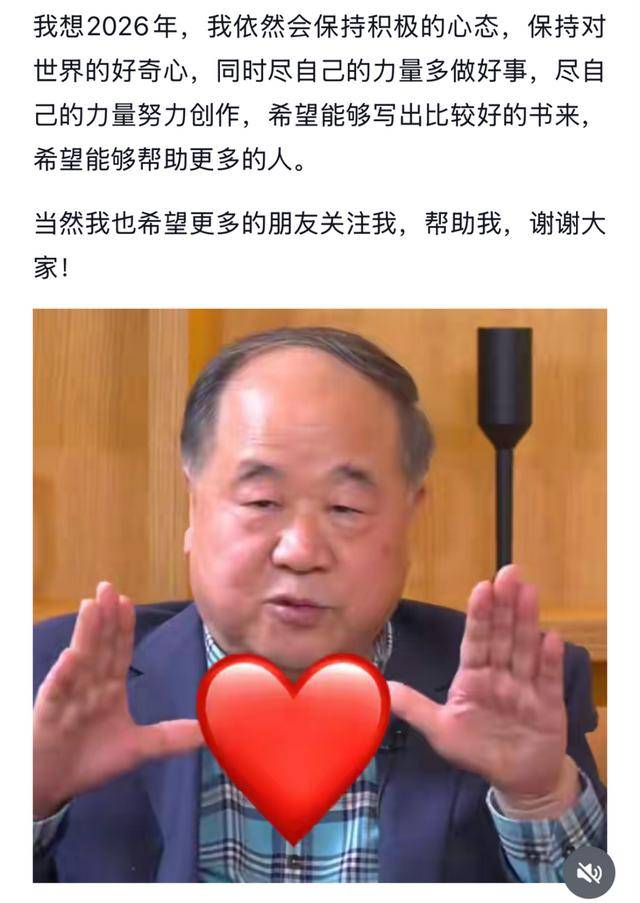 12月23日,莫言在社交账号上发布了2025年终总结。