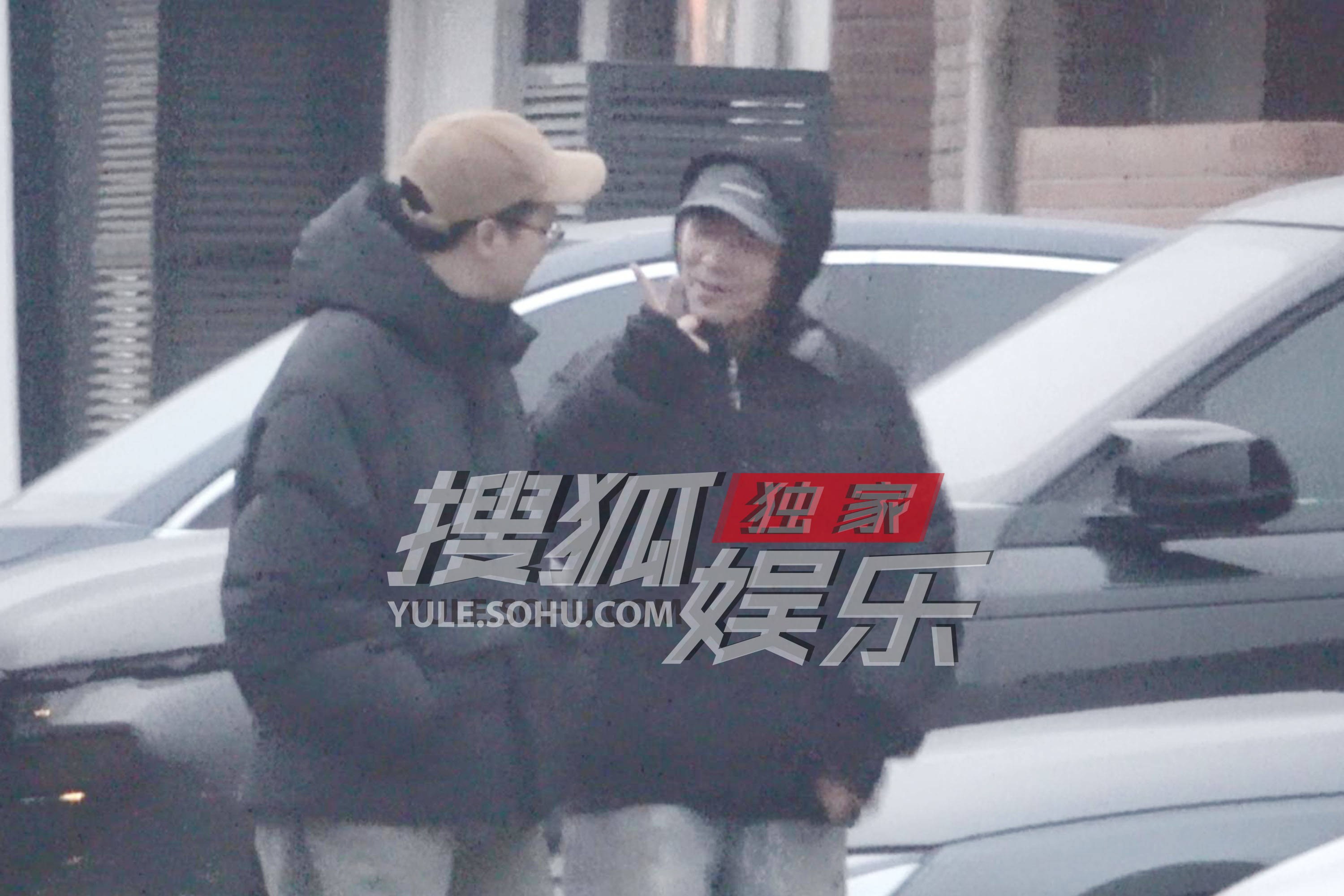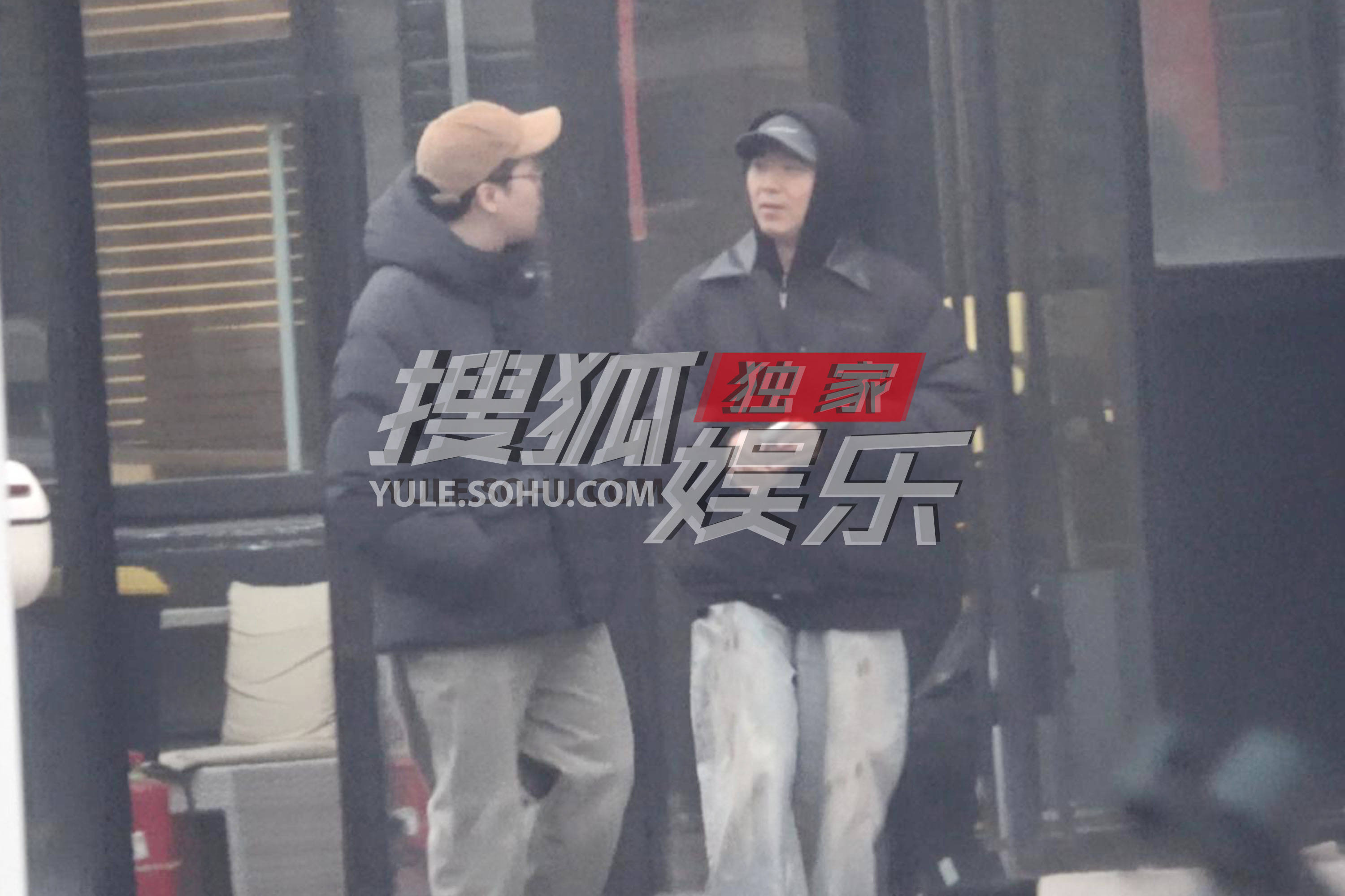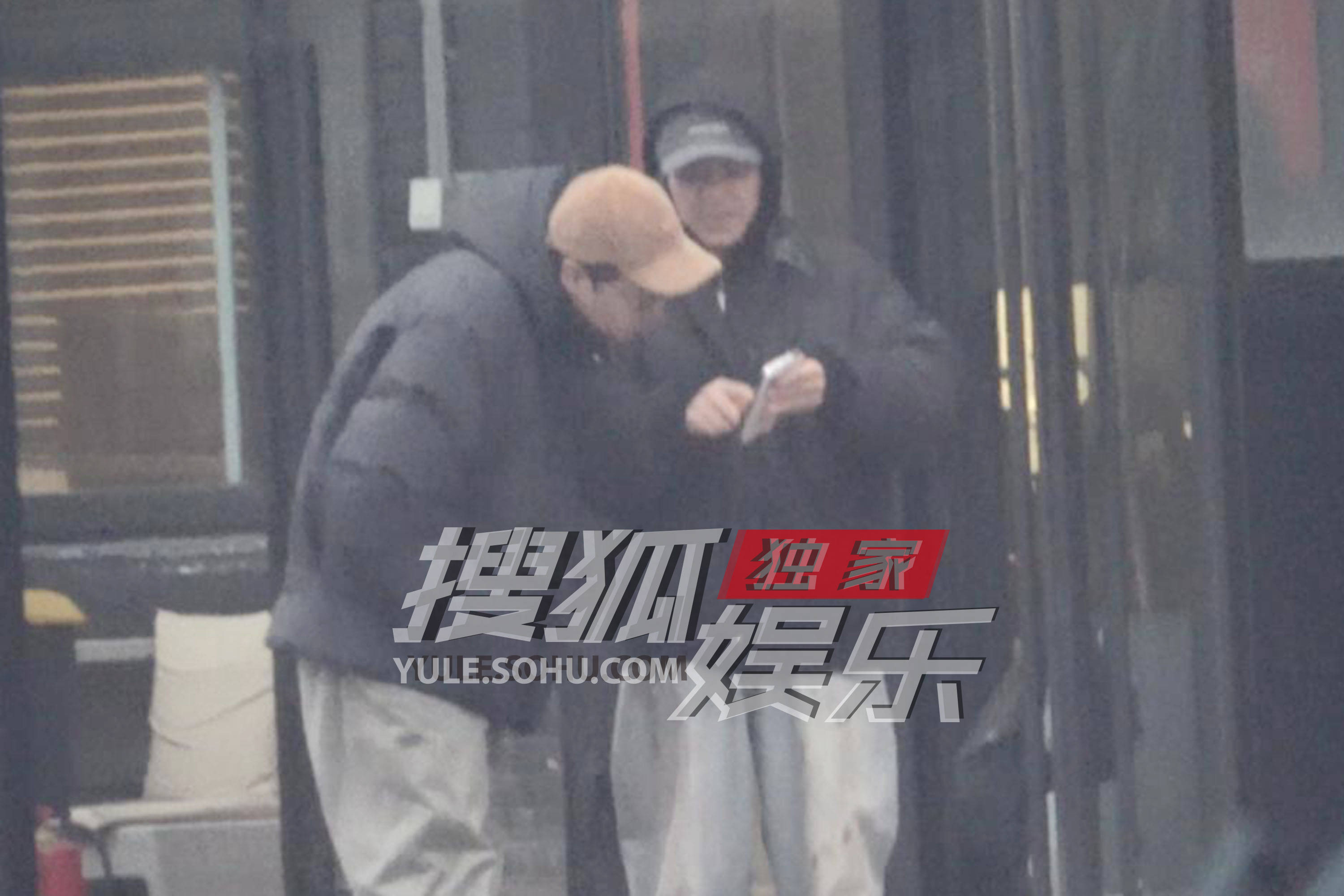 大鹏戴着护耳帽,还叠戴着外套帽子。