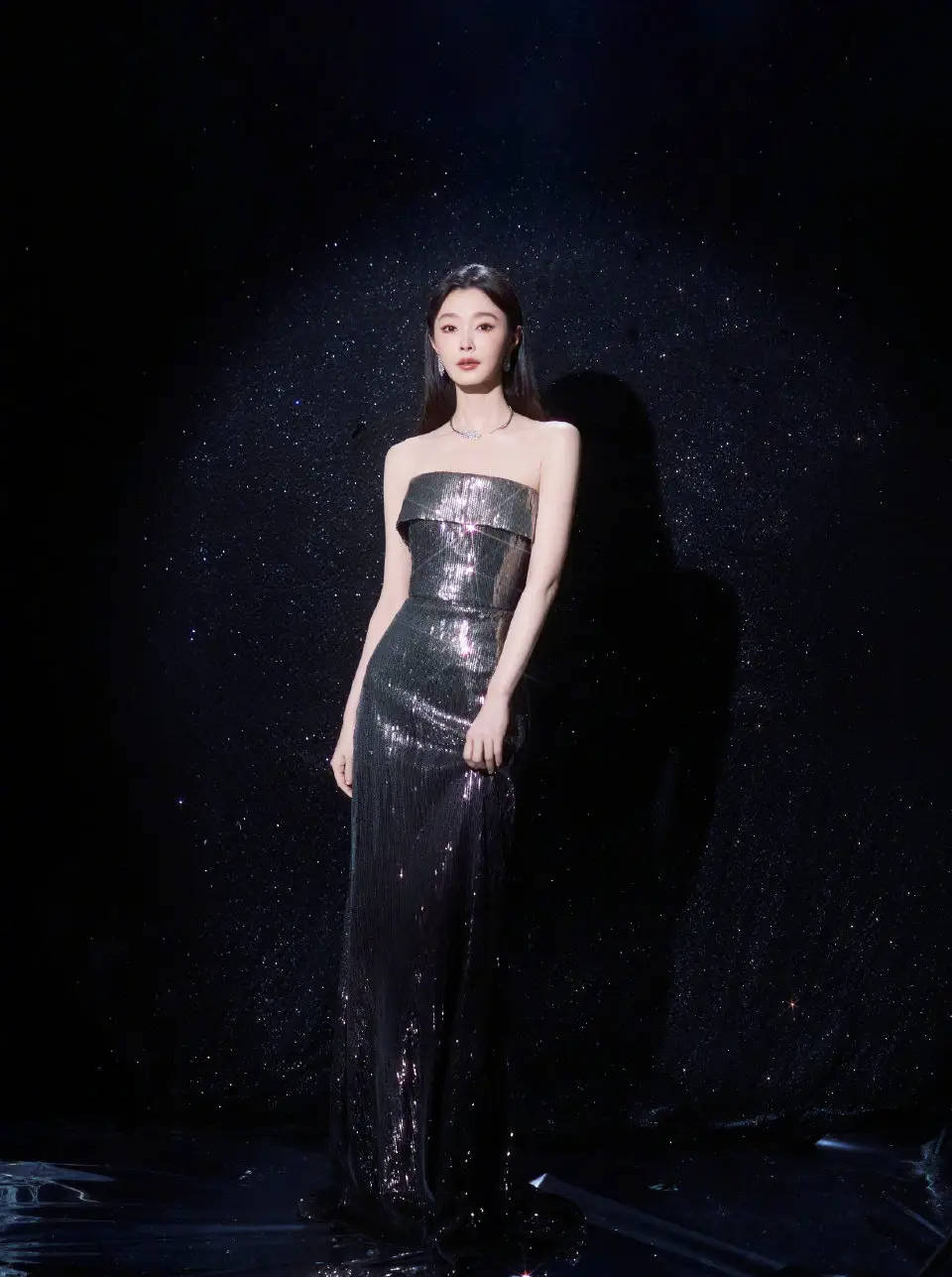 宋轶静立星光下,亮片裙造型吸睛。