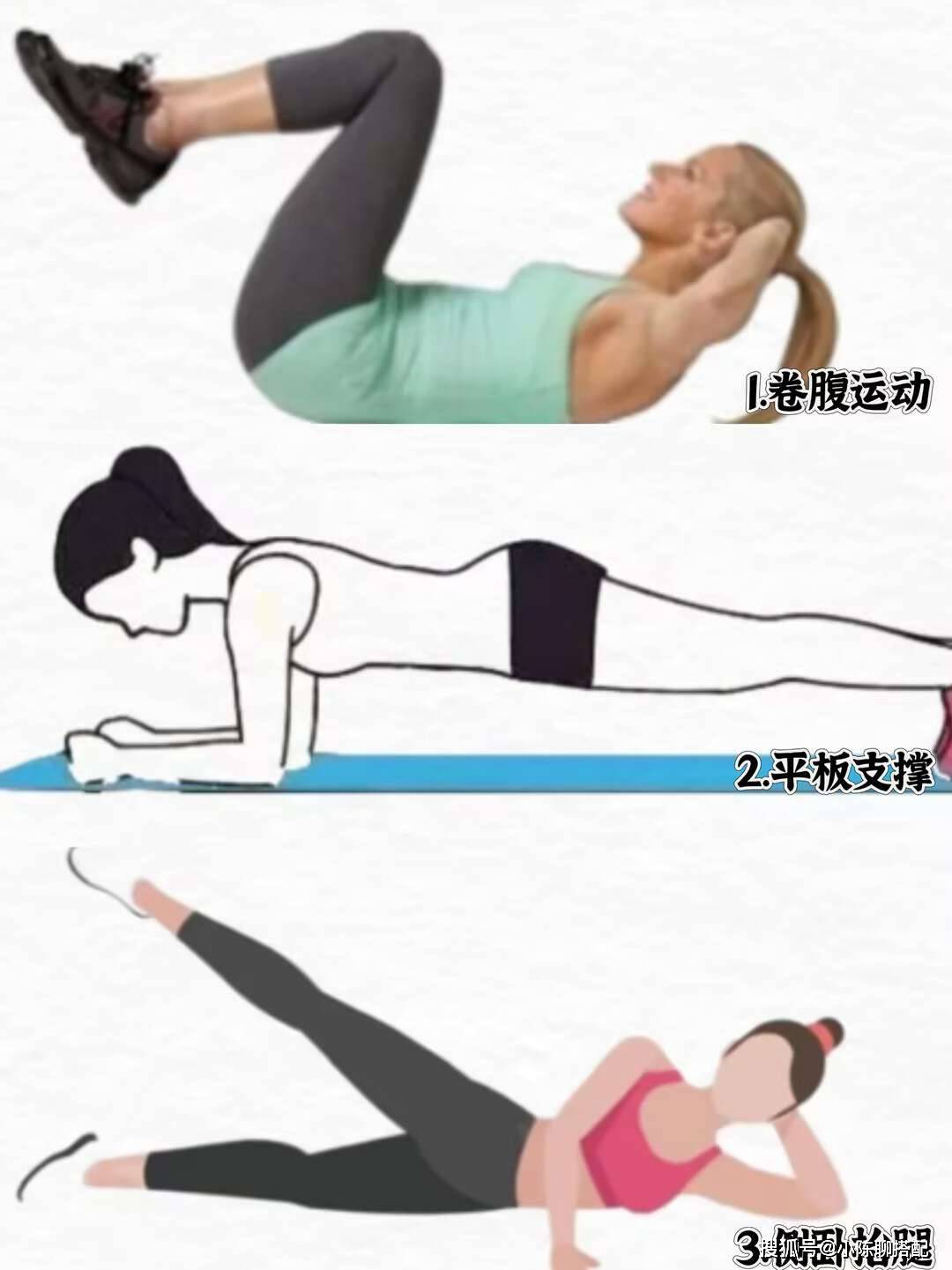 第三个动作就是侧卧抬腿,通过抬腿去挤压侧腰肌肉,这样的三个动作,每天做个2-3组,一组20个左右就可以啦!