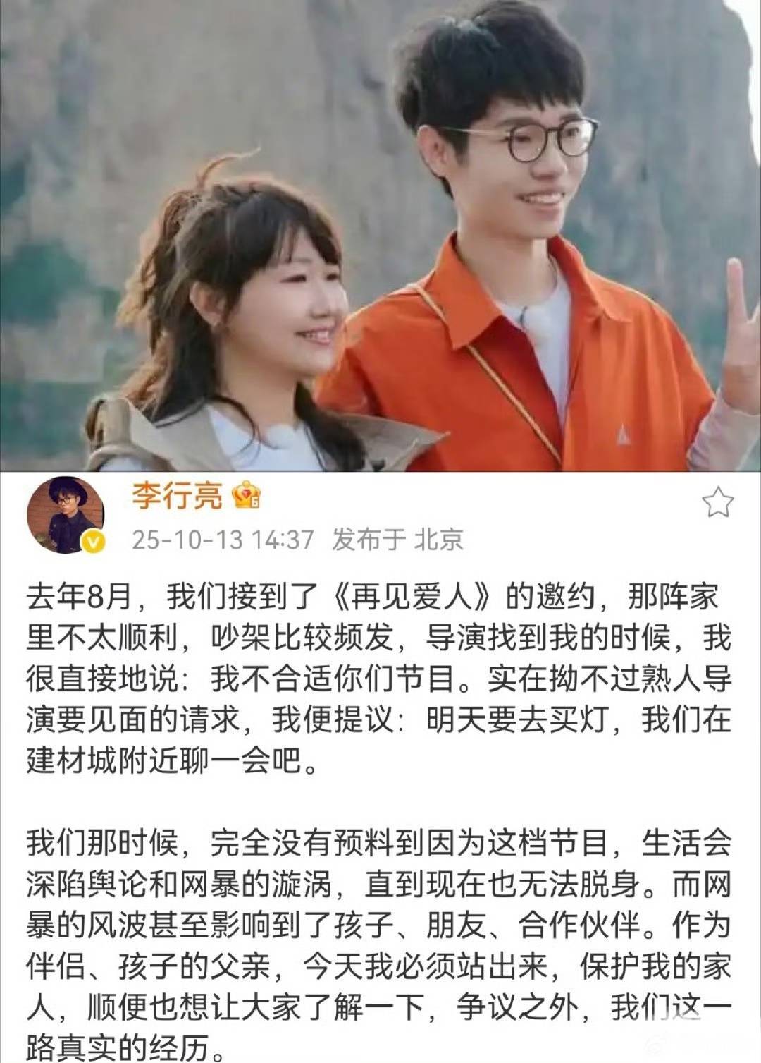 节目中,李行亮坦言网络上针对他的负面评价极为刺耳。他被贴上了“阴暗心机男”的标签,更有极端言论指责他“演砸了”,甚至要求他“把自尊捡起来”。部分网友认为他对待妻子的方式传递了不健康的婚姻价值观,进而发起了抵制行动。这种抵制并非停留在网络声讨层面,而是直接冲击了他的商业合作。李行亮透露,有品牌方因承受不住舆论压力,不得不选择撤单,就在不久前,他又失去了几个已经谈好的工作机会。