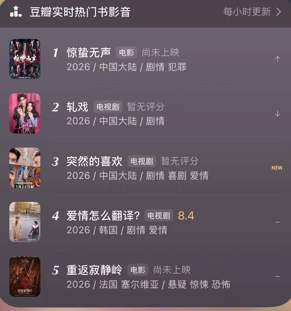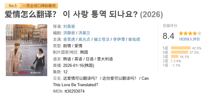 作为一部韩剧,能在这么多热门国产影视作品中,挤进豆瓣实时书影音的前五名,也足以说明本剧的热度了。