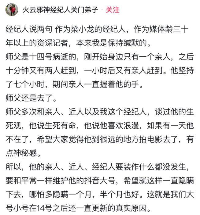 梁小龙走得太突然了,确实令很多人都难以接受。