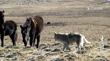 隔着一条河, 一人一狼,遥遥相望。