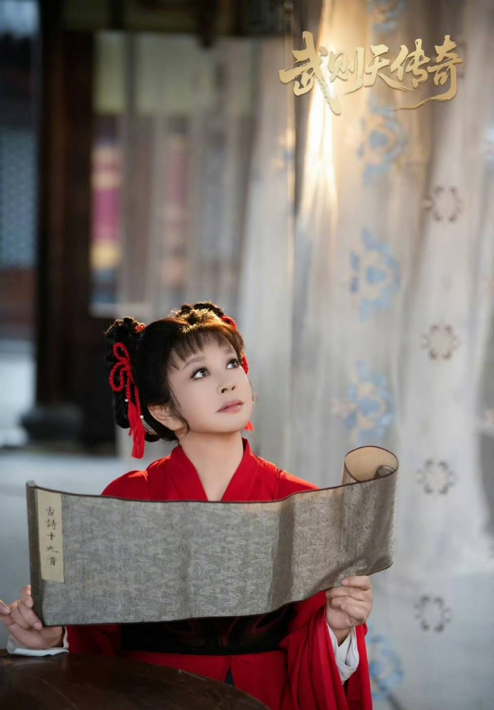 其中有一张刘晓庆“红衣少女”的图,跟45岁时她出演的“少女版武则天”,并无明显差距。