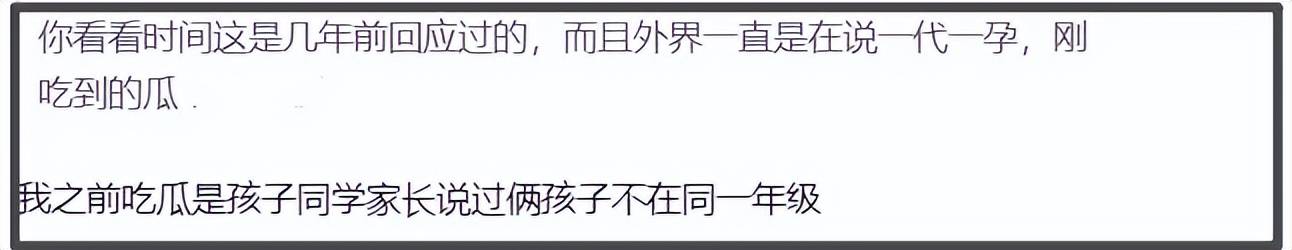 同时,网友也不认可杨天真晒孕照的澄清,认为无法证明俩孩子是一起生的。还有网友翻出张雨绮孩子同学的家长爆料,称两个孩子不在同一个年级,网上也流传着女儿幼儿园毕业典礼儿子已经穿上了小学校服的照片。如果是双胞胎,上学时间基本一致。而真想澄清,有很多手段,比如超声波照、产检证明等等。