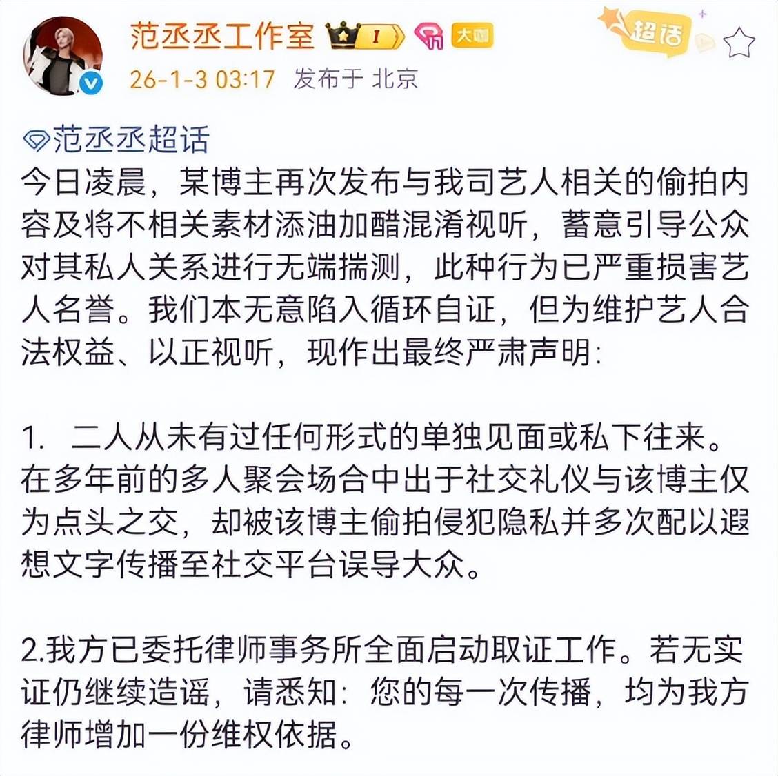 从青涩偶像到能扛票房的演员,范丞丞走了不少弯路,也终于摸透了“沉淀”的意义。春晚对他是机遇,更是考验:低调不是怯懦,是对舞台的敬畏;收敛不是妥协,是往实里走的清醒。毕竟演艺圈里,一时的热闹终会散,踏实打磨作品的人,才能走得更远。