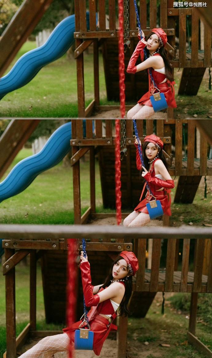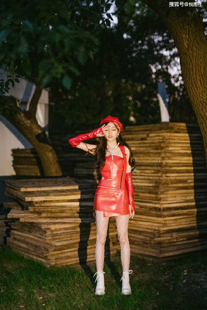在这组户外写真中,吴宣仪以炽焰红漆皮套装搭配亮钻网袜,诠释了明艳与飒爽的甜酷风格,在暖调夕阳的衬托下,成为兼具活力与质感的视觉焦点。