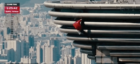 在攀登101的过程中,随着高度的爬升,风也会越来越大,塔顶的结构很复杂,风力更是强劲到需要亚历克斯咬牙坚持。