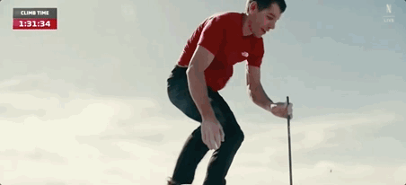 就像他在攀爬前调侃道“一旦掉下去,你就会死”。
