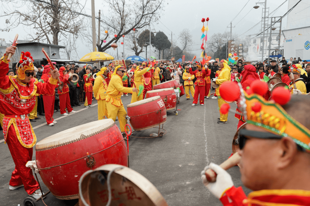 200名村民身着盛装,手持锣鼓,舞步铿锵、鼓点震天,原汁原味的民俗展演让现场观众直呼“找回了小时候的年味儿”。