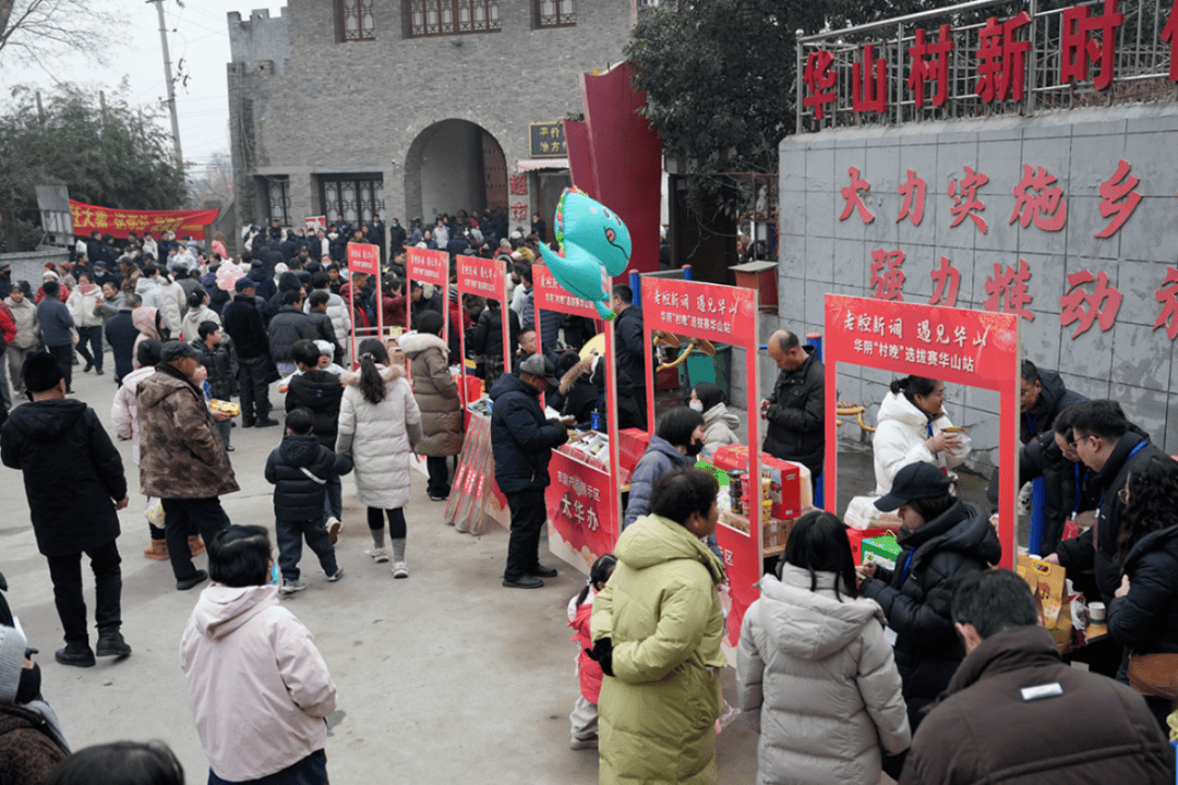 活动现场不仅有文化大餐,更有暖心互动与发展新机。蒸花馍、包饺子、剪纸等体验区人头攒动,村民与游客在动手实践中感受民俗魅力;直播间里主播“云看村晚”,推介华山剪纸、老腔文创,让文化热度转化为消费动能。